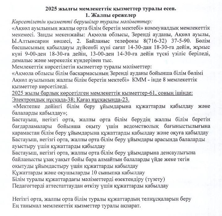 2025 жылғы мемлекеттік қызметтер туралы есеп